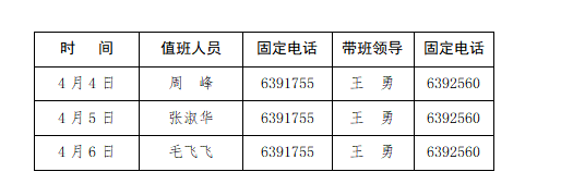 党委教师工作部(人事处、人才办)清明假期值班表